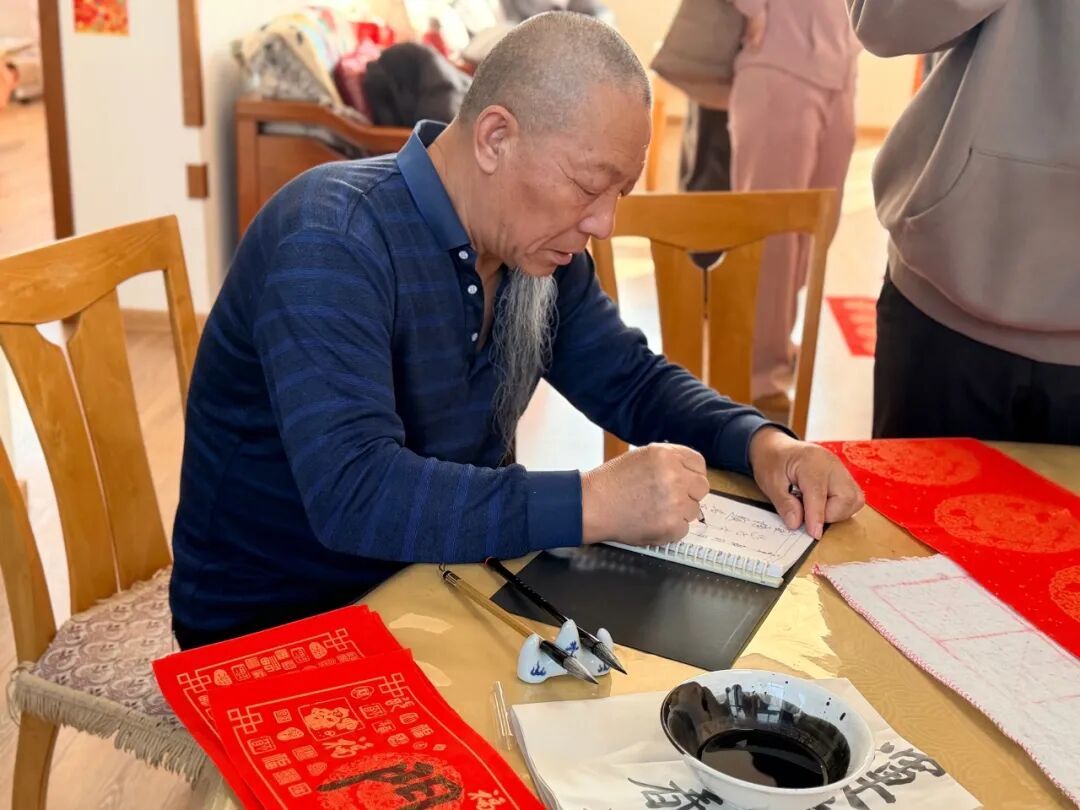 “2019年我退休了,终于有了更多时间学习书法。3年前临近春节,我就想着,不如把大家的心愿写进春联里,送给街坊邻居,既热闹又有意义。没想到大家都特别喜欢,这一写,就坚持到了现在。”解长生说,这个春节,他已经写了近百副春联。年味儿就是这样带着墨香、藏着人情的小温暖。