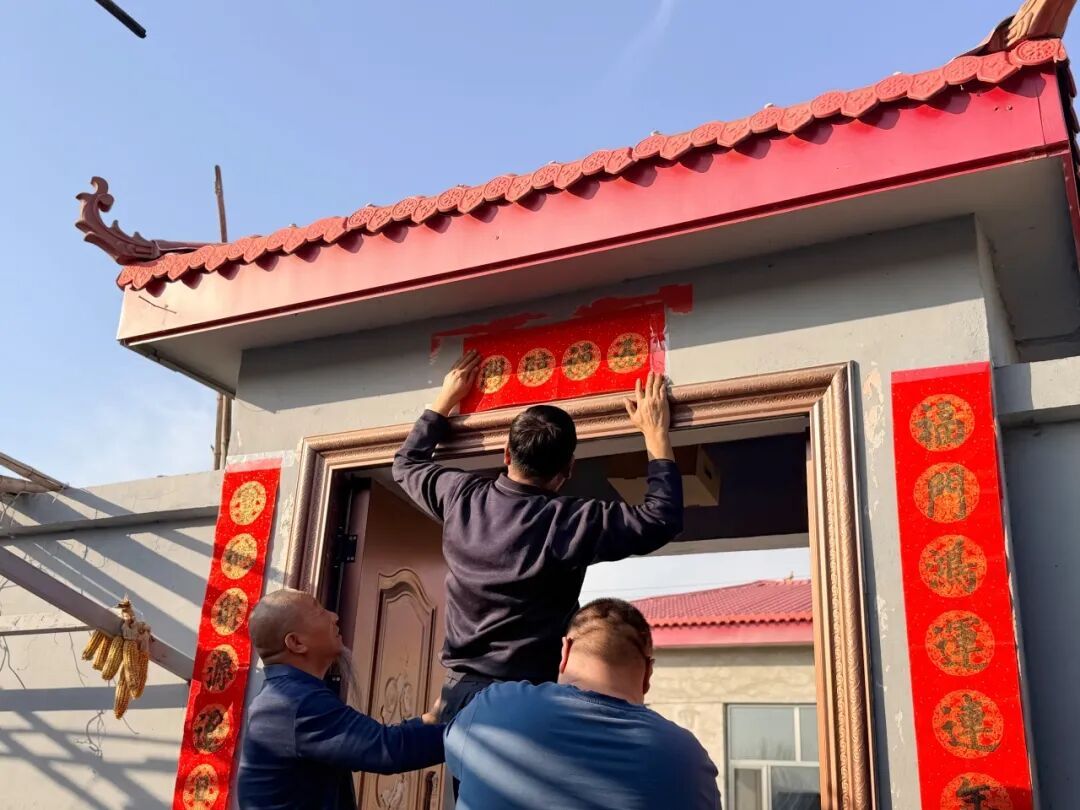 村民将“定制”的春联贴在门上。