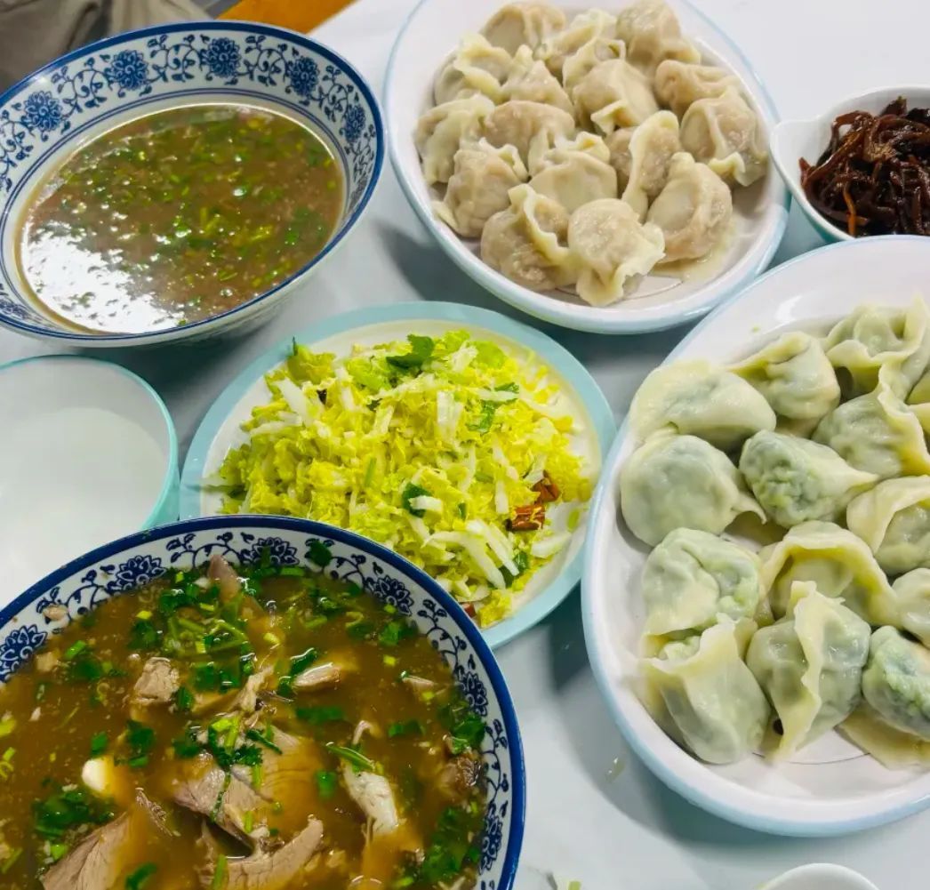 饺子馅大肉足,皮薄馅大,尤其是牛肉馅饼和韭菜虾仁馅的饺子特别受欢迎。锅贴底部煎得酥脆,内馅鲜美多汁,搭配腊八蒜和醋更是美味。