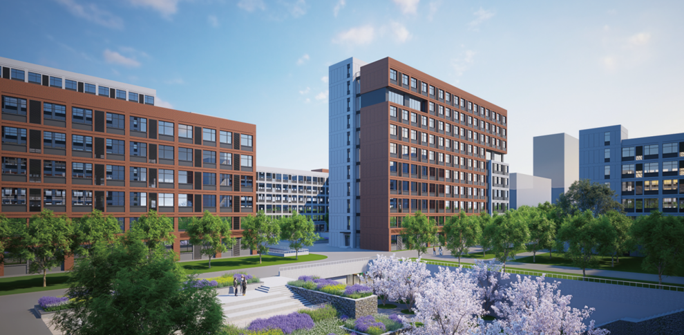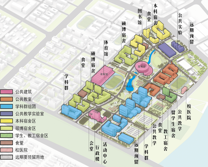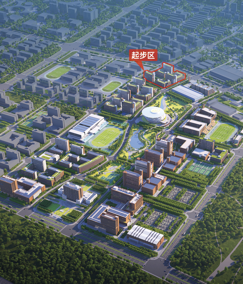 起步区本科生宿舍组团建设项目位于一期整体用地西北角,用地面积约2.88公顷。拟新建本科生宿舍楼4座,新建总建筑面积约7.1万平方米。