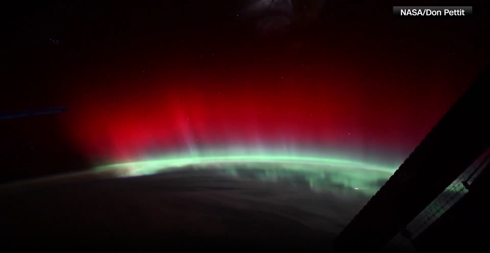 据美国多家媒体2号报道,一名美国宇航员分享了他在国际空间站拍摄到的红色极光。