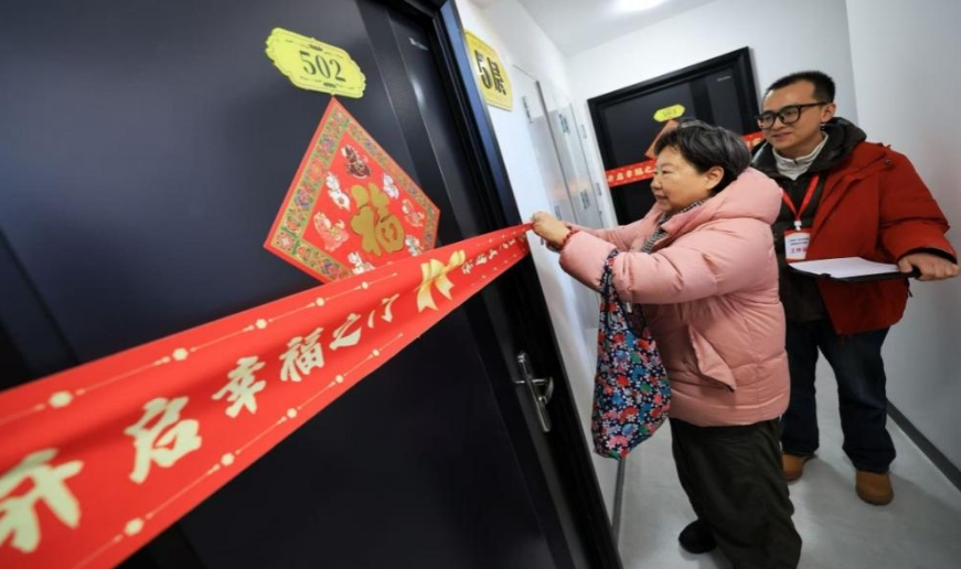 据介绍,改建后的新楼结构符合北京地区八级抗震要求,户型设计更加合理,在建造工艺上特别注意隔音、防水等细节处理,增加了全龄化关怀设施,加装电梯、无障碍坡道等适老化设施。另外,家具、窗台等边角均做圆角化处理,守护孩子安全成长,这些贴心的设计让74岁的刘桂兰大妈特别满意。当天,包括她在内的居民们自发地聚到一起,在镜头前,大家高兴地喊出心声:“新春快乐,新家真好!”一张全家福照片定格了居民们乔迁新居的幸福时刻。