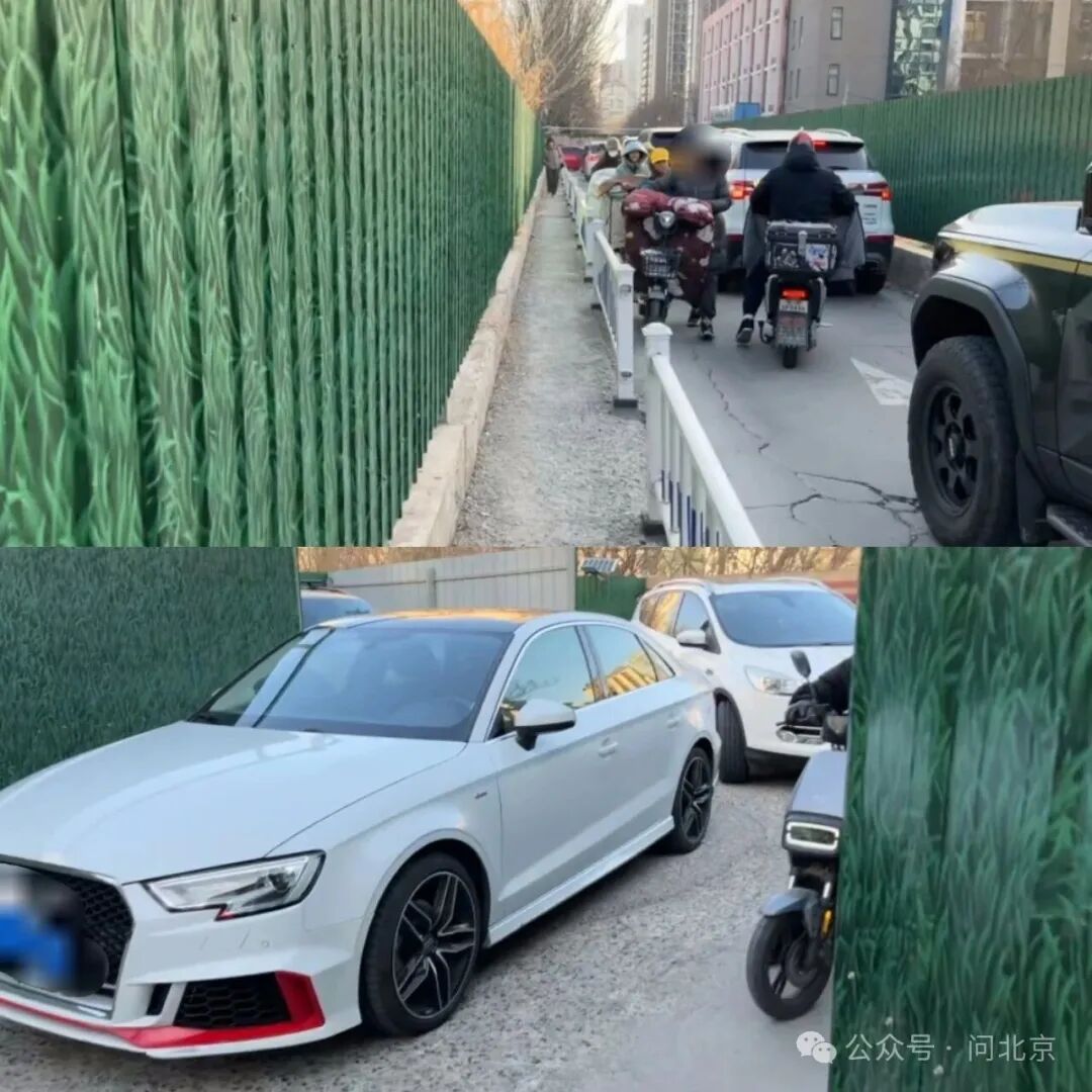 刘先生告诉“问北京”记者,丽津北街 “消失” 后,周边居民只能选择从北侧或南侧绕行到学校,例如走北侧绕行路线,需途经正在施工的菜户营西街,再通过东侧荒地上用铁皮围挡隔出的狭窄坑洼小路,才能绕到学校东门,通行条件恶劣,“绕行确是远很多,我一年轻人走路速度快一些,绕这一次可能得 6 分钟,要从我们小区里穿可能 2 分钟就过去了。要是老人孩子上下学,那可能时间就得更长一点。而且绕行线路后面的路都是单行道,还会有一些崎岖的弯道,到离近学校那段就都是机动车、行人、电动自行车混行了,不好走也不安全”。