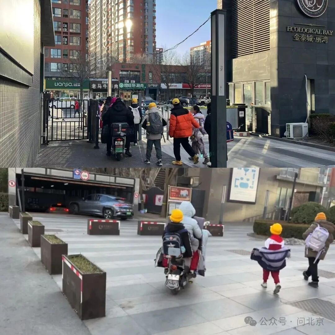 在金泰城丽湾小区的东门、西门等出入口,现在多处可见 “非本小区人员禁止从本小区穿行 请自觉绕行” 的醒目标识。李大妈(化姓)等小区居民告诉记者,本小区本为封闭管理小区,但每逢上下学高峰,总会有来自蓝调国际、丽新嘉园等周边小区的学生和家长,或三五成群步行,或骑电动车经由小区东门、西门穿行往返学校。这一行为不仅打乱了小区的封闭管理秩序,更藏有安全隐患,“从下午3 点多到 4 点多这一阵下学时间小区里全是人,我们这会都没法出来遛弯,有时候还得躲着人流,要不然给你撞一跟头”。