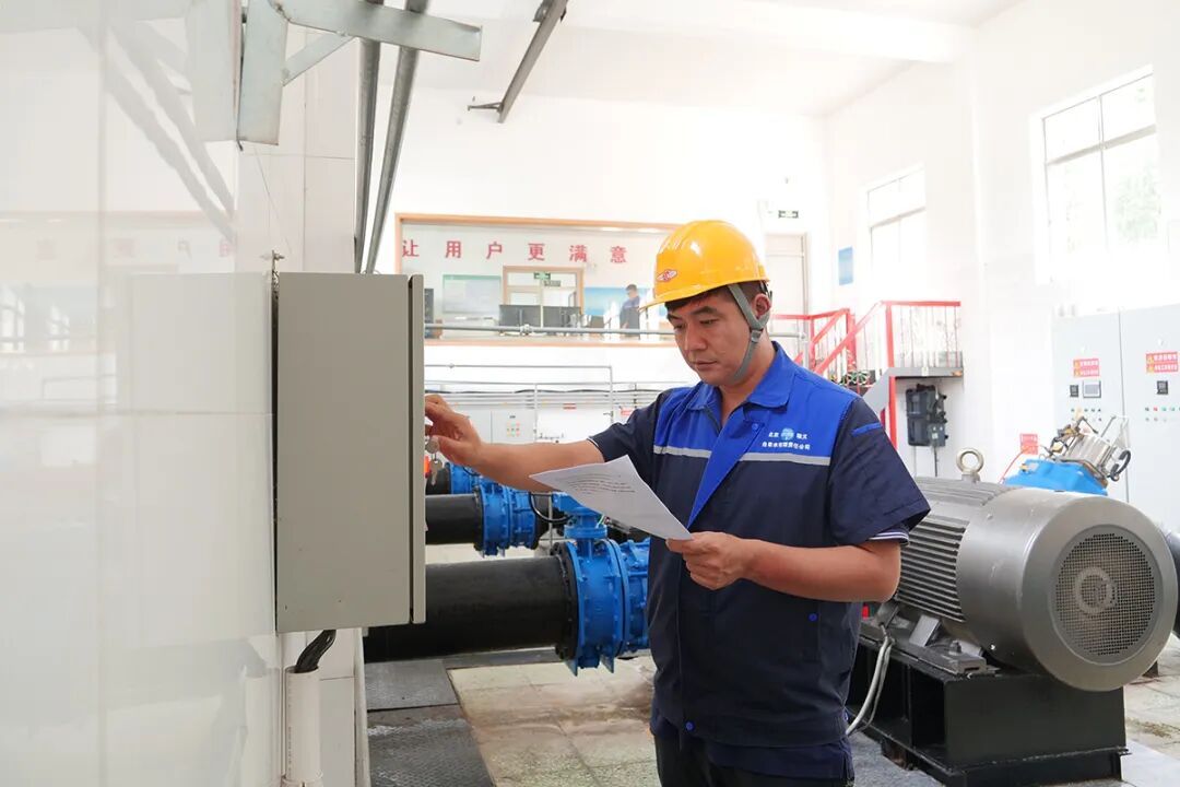在马坡水厂的机房里,机器运转平稳有序,发出规律的低鸣,顺义自来水公司生产运行工闫超正弯腰检查供水设备的运行状态。“节前我们对设备进行了检查保养,国庆假期用水高峰,可不能出岔子。”他手里拿着巡检记录表,每检查一项都会认真记录。