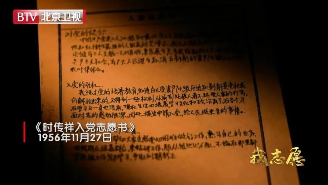 这是时传祥一生中最为珍视的文件——他的入党志愿书,其中在入党动机一栏中,他这样写道:“我经过党的培养教育,知道自己受资产阶级压迫和剥削,是党把我们解放出来,又得到了一些权利。以前到处被人看不起受人家的打骂,在学习上一点也没有。现在生活也提高,学习文化和政治有了,在各个方面对我的感动很深,因此提出申请入党,给人民做更多的事情。”