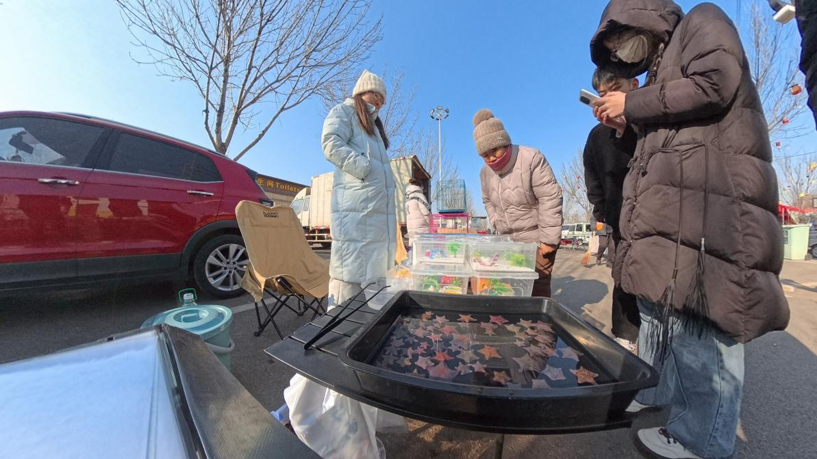 宠物海星摊位前顾客在挑选宠物。人民网记者 王天乐摄