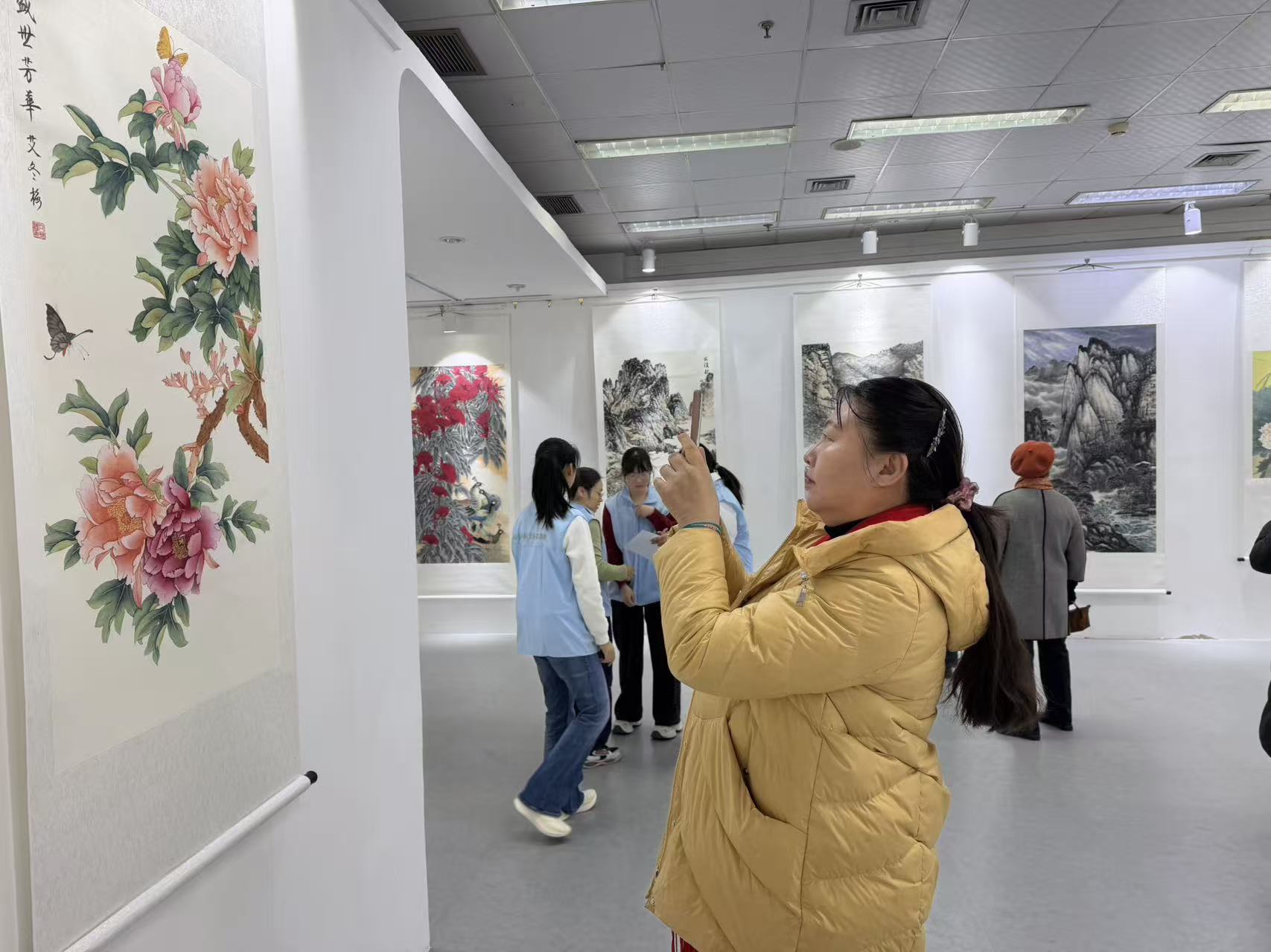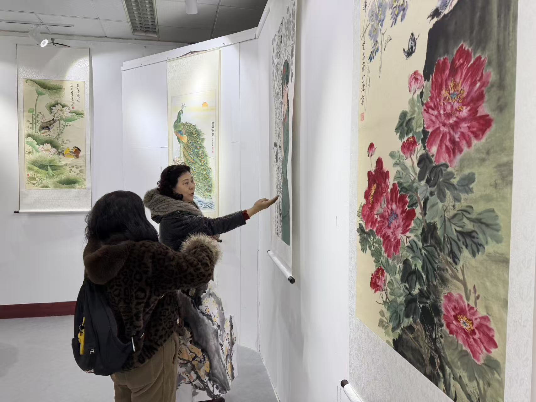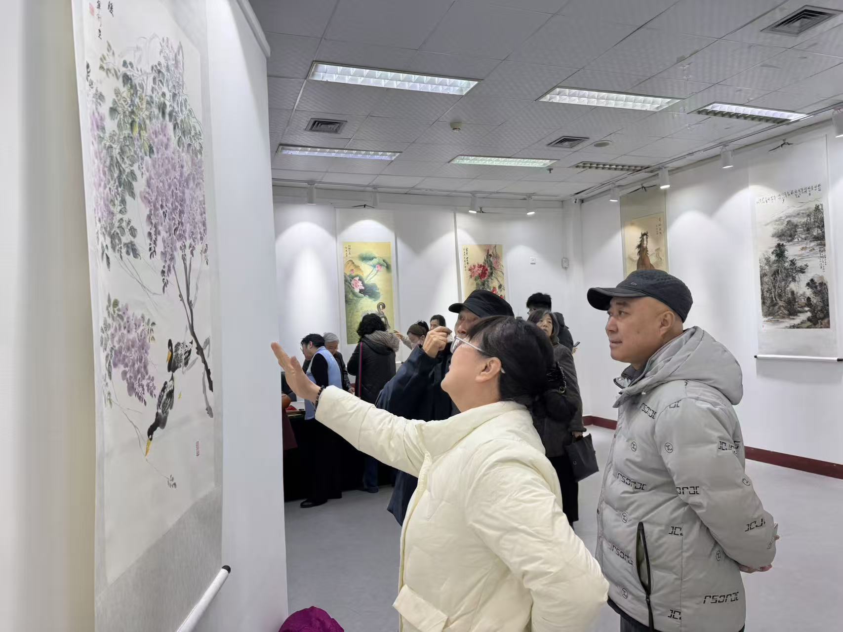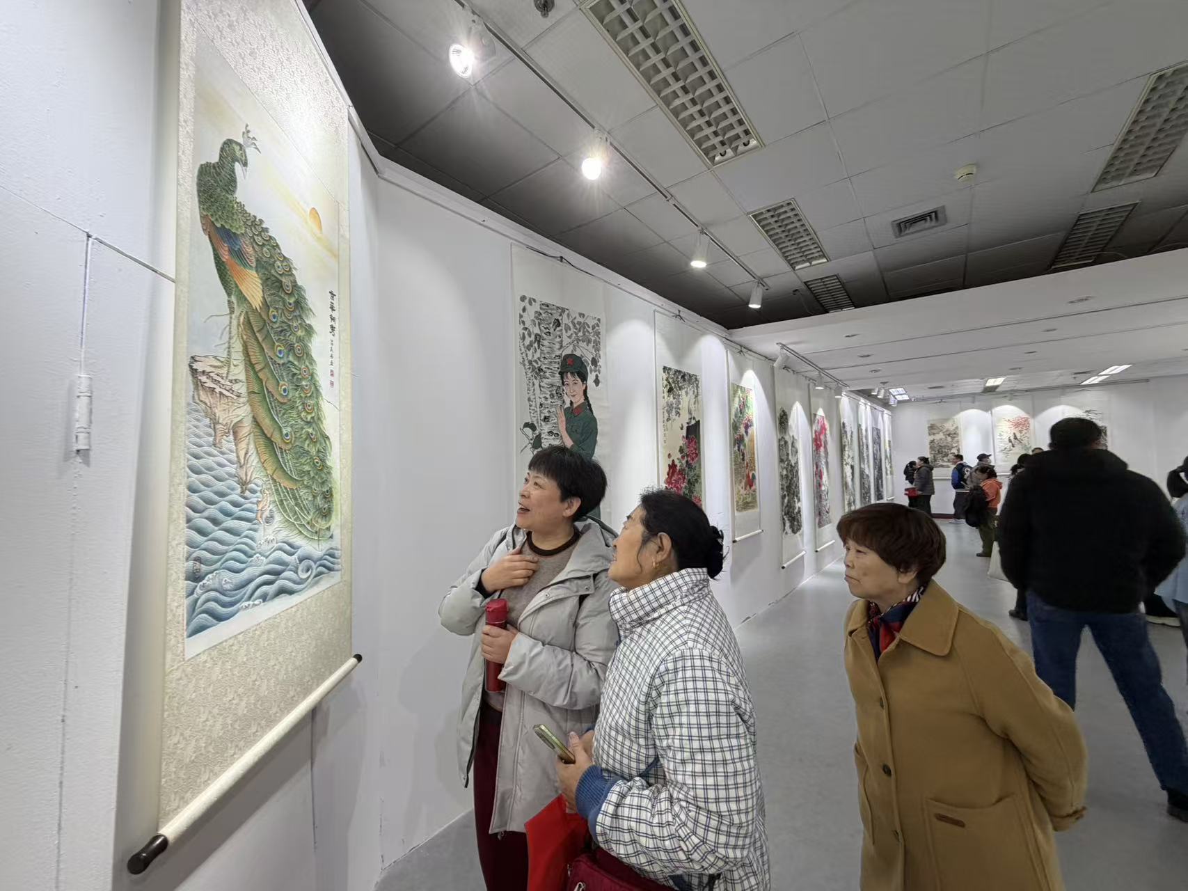 走进展厅,一幅幅笔墨酣畅、意境悠远的书画作品依次排开。栩栩如生的孔雀工笔画翎羽分明、顾盼生姿,国色天香的牡丹图艳而不俗、气韵生动,紫藤花鸟图则在水墨晕染间尽显生机,引得不少市民驻足凝视、轻声赞叹。展厅之内,既有工笔花鸟的细腻雅致,也有写意山水的雄浑开阔,更有油画作品的现代质感,多元的艺术表达让人流连忘返。