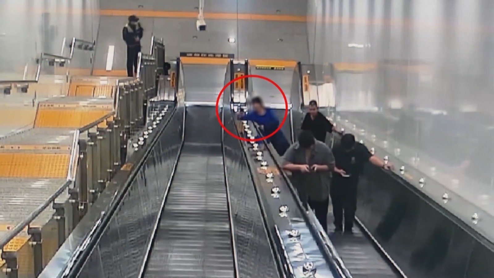 南宁市公安局地铁分局科园东站派出所辅警 张秩维:因为那个青秀山的地势比较高,扶梯比较长,这里成为一个网红的一个打卡点。所以当天那个张女士是坐扶梯时,在扶梯上拿手机拍照,一不小心被扶手带带摔倒的。