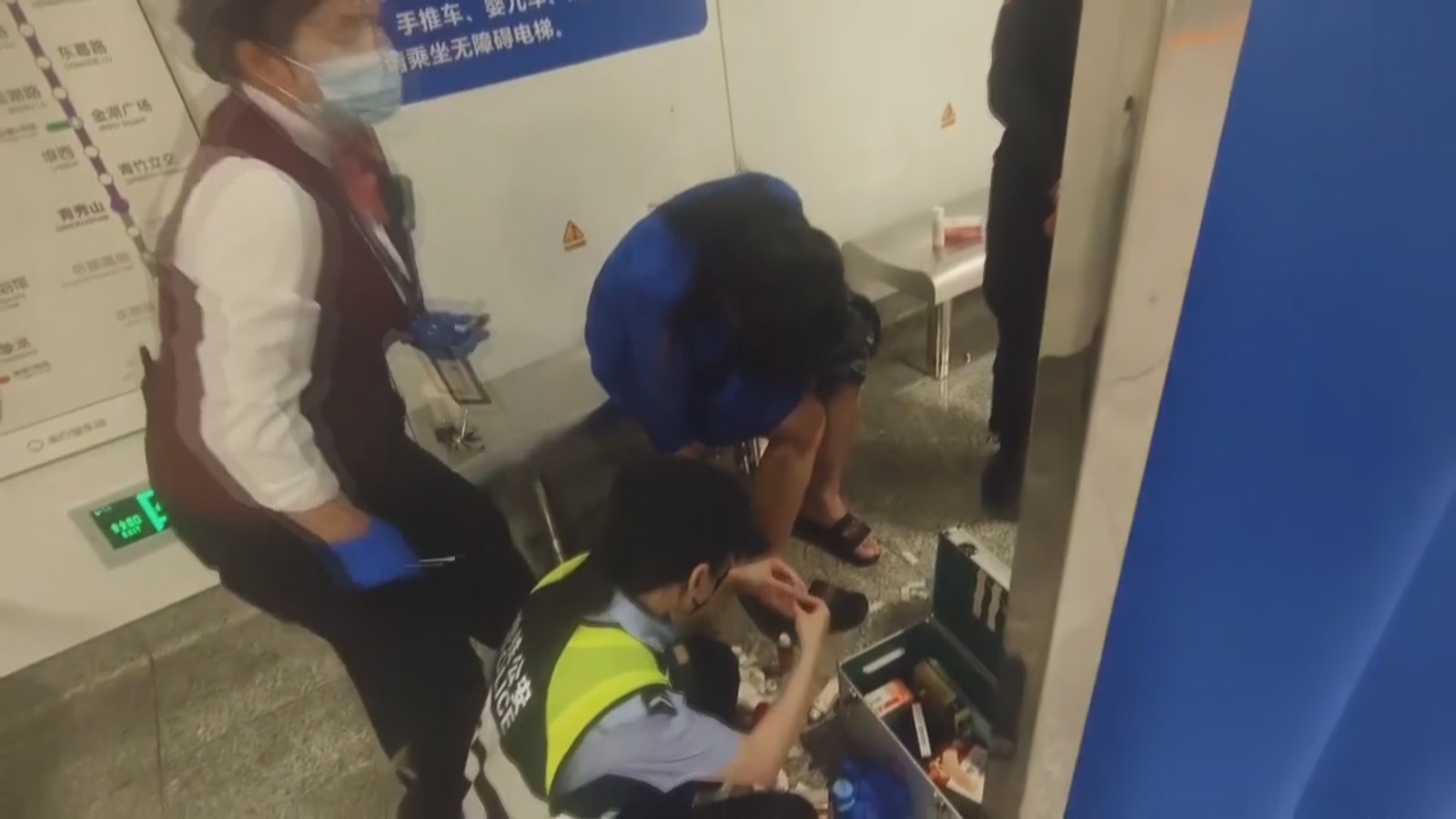 南宁市公安局地铁分局科园东站派出所辅警 张秩维:身上有多处明显的划伤,于是就一边安抚她的情绪,一边为她处理伤口。