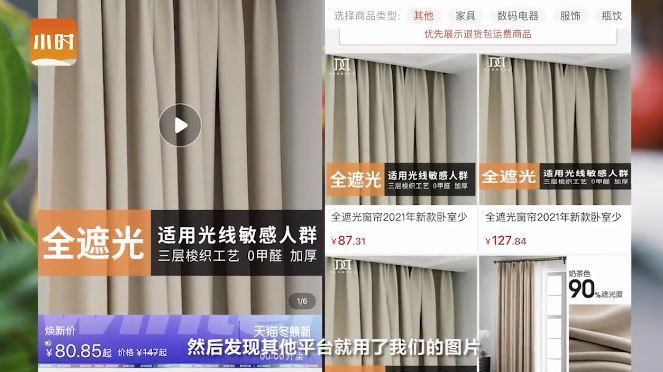 现在盗图抄店的现象,已从重灾区服装类产品,延伸到窗帘、货架、箱包等其他品类。