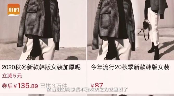 最近,浙江杭州的一个女孩小萌,在网上买了一件网红爆款小西装,意外发现自己和闺蜜“撞衫”了,闺蜜也买了一件同款。但奇怪的是,两件衣服的材质和价格,却是天差地别。小萌一问闺蜜,发现两件衣服来自于两家不同的网店,但商品页面却显示着同样的模特图,月销量都有上百单。这到底是怎么回事儿?难道有一家卖的是假爆款衣服?