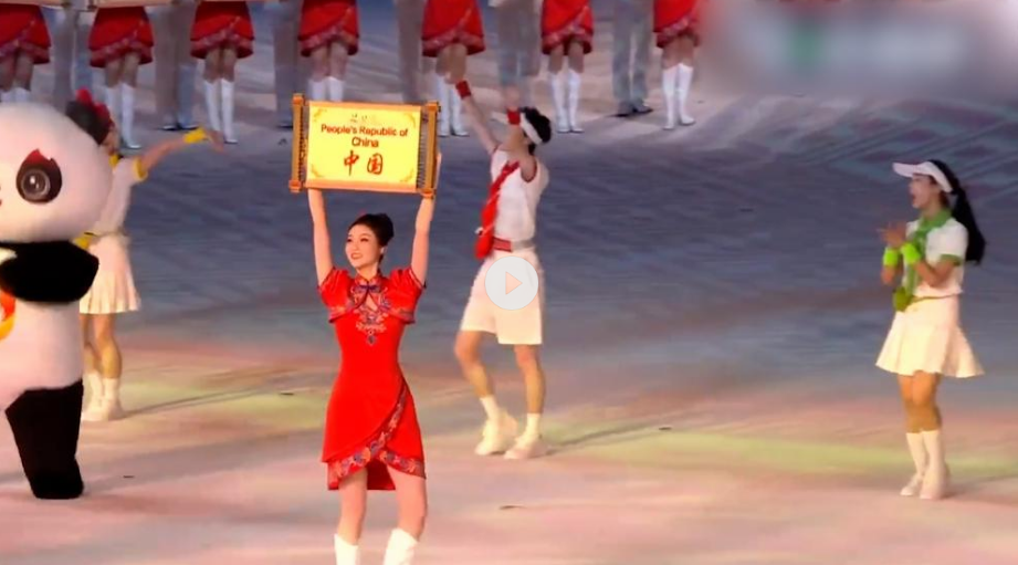 7月28日晚,四川成都新东安湖体育公园主体育场,第31届世界大学生夏季运动会开幕式举行。来自全国100多所高校的411名运动员代表中国参赛。在一片“雄起”声中,中国代表团入场。