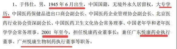 招股书对悦康药业董事长、实控人于伟仕的介绍非常简单,仅有出生年月、学历和现任职务。