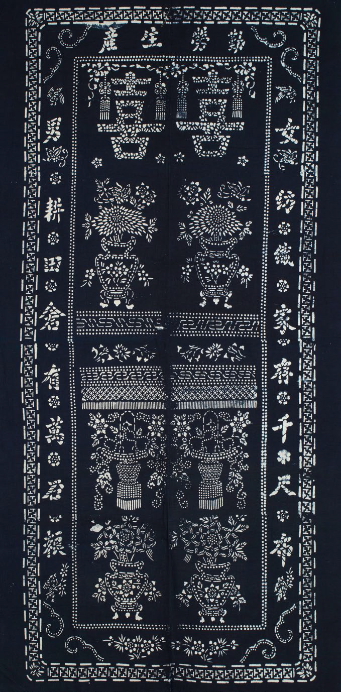 “劳动生产”双喜蓝印花布褥面