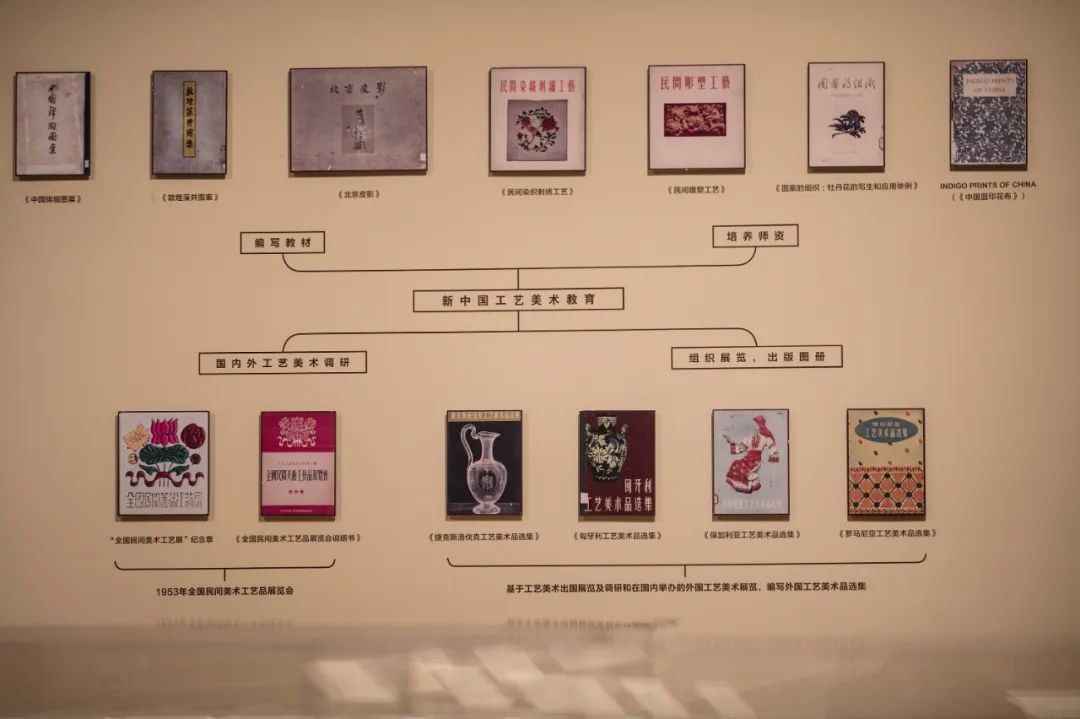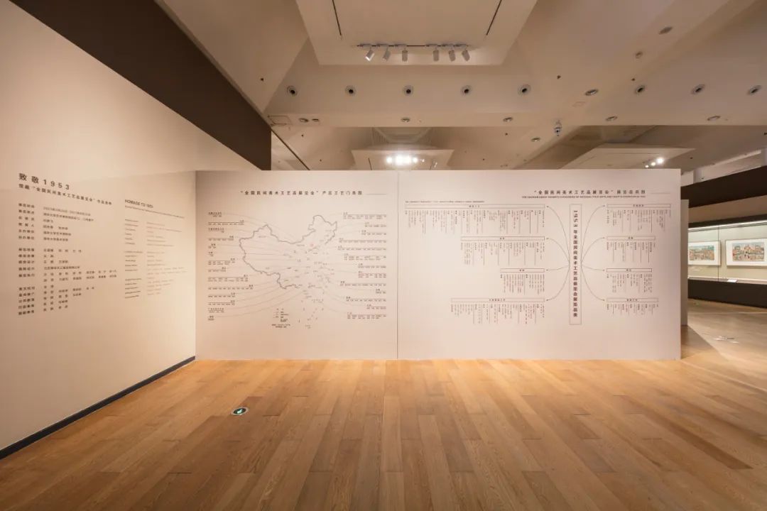 1953年是新中国工艺美术事业发展的关键之年。为筹备“全国民间美术工艺品展览会”,文化部组织了全国工艺美术调查。为筹建新中国第一所工艺美术高等学府——中央工艺美术学院,中央美术学院华东分院实用美术系从杭州北上并入中央美术学院实用美术系,师生骨干参与筹备展览。展览筹备促进了产区恢复、教材出版与师资培养。展览举办的同时,召开南北专家、各地艺人的座谈会,促进了工艺交流。1954年展览结束后,部分展品成为四个工艺美术出国展览的重要展品,多位1953年展览筹备者带队组织出国展览,促进了国外工艺调研、文化交流、著述出版和工艺美术品的出口换外汇;部分展品划拨给中央美术学院实用美术系,助力筹建中央工艺美术学院。因此,本单元以“致敬1953”为标题。