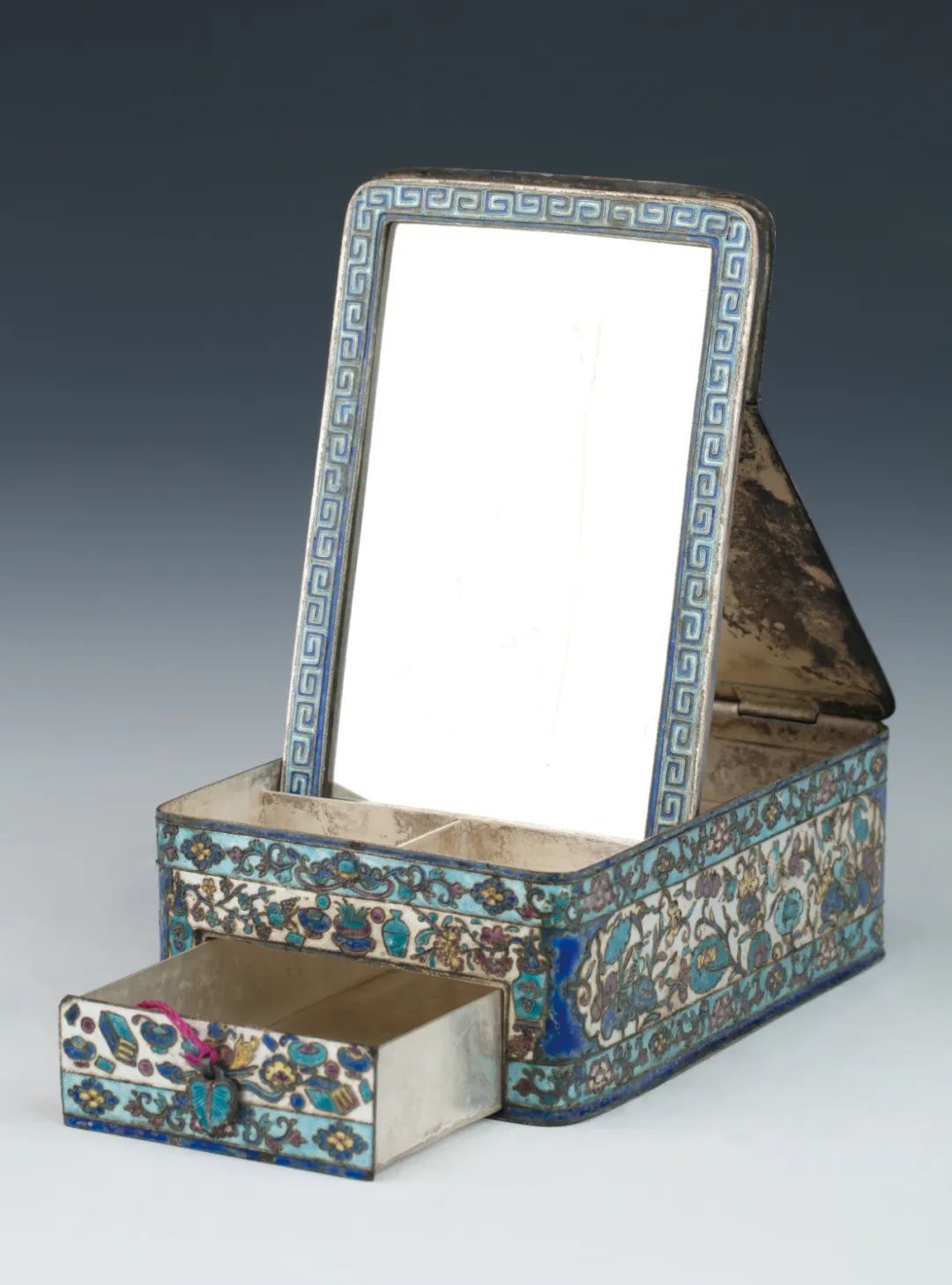 银胎点蓝梳妆首饰盒