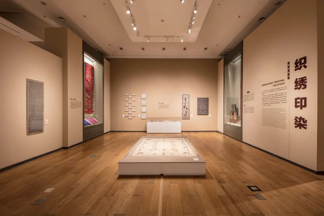 本单元依据工艺、地域、民族分为织绣、印染和少数民族工艺三类,品种丰富,来源广泛,工艺精美,兼顾手作与机制。织绣分丝织棉织,刺绣和挑花网扣,典型有南京云锦,成都蜀锦,苏州漳缎、缂丝等。刺绣以日用品为主,如钱袋、信插、扇套、镜盒等。蓝印花布分蓝地白花和白地蓝花,应用广泛,可做围嘴、肚兜、被褥面、门帘等,产地有湖北、河北、陕西、安徽、浙江、江西等。彩印花布以桌围最具特色,河北、河南、陕西等地是重要产地。少数民族工艺品主要来自西南地区,以布料和服饰为主,工艺有织花、刺绣、蜡染等。