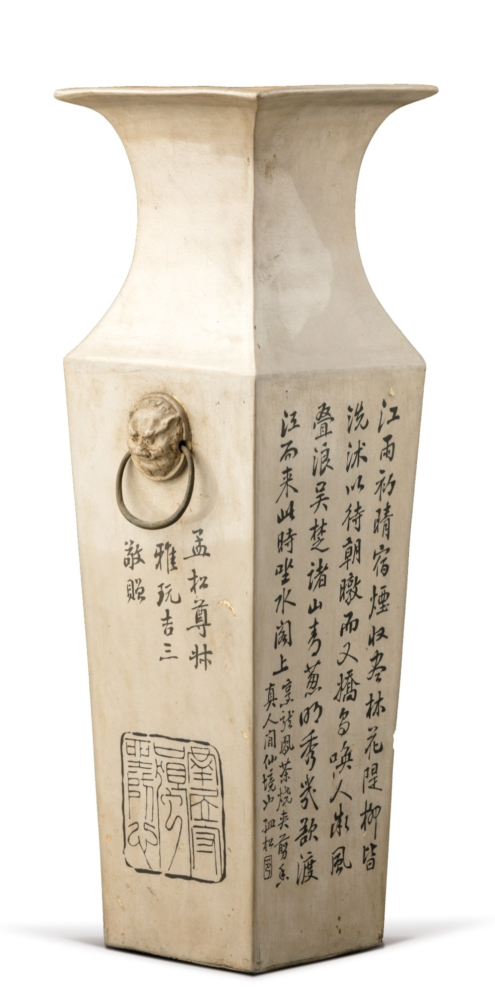 紫陶双耳四方瓶
