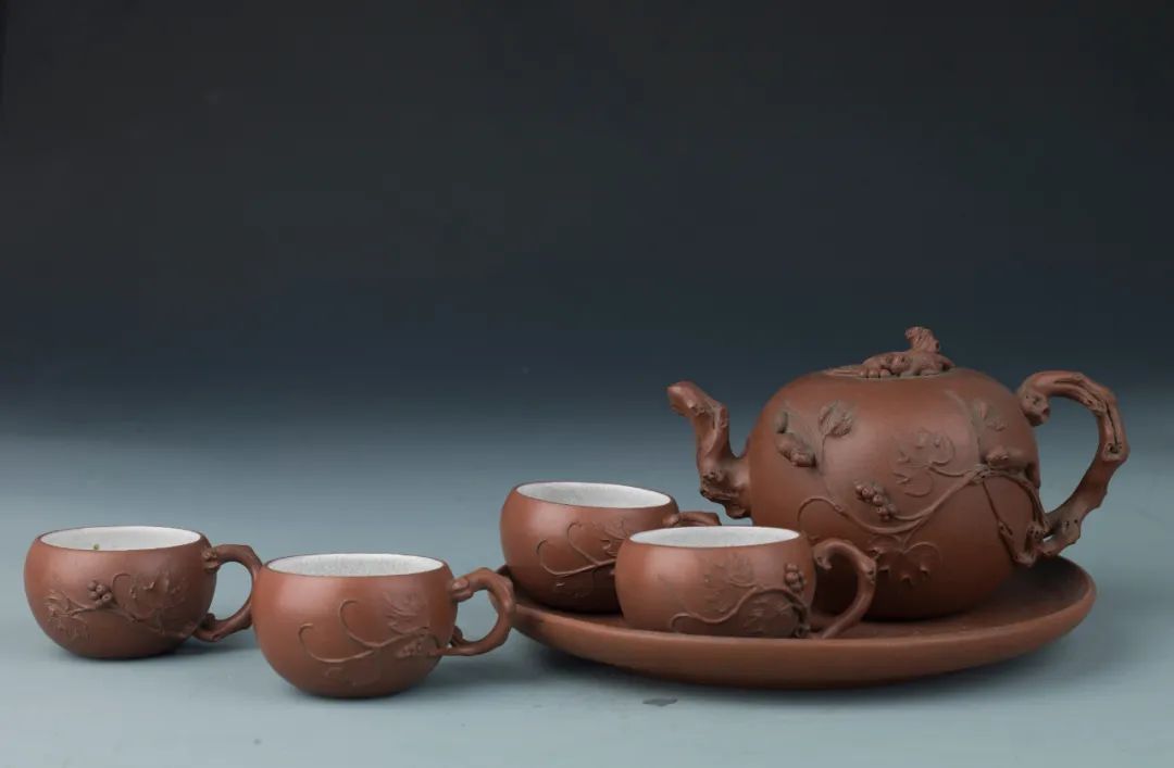 紫砂松鼠葡萄茶具(6件)