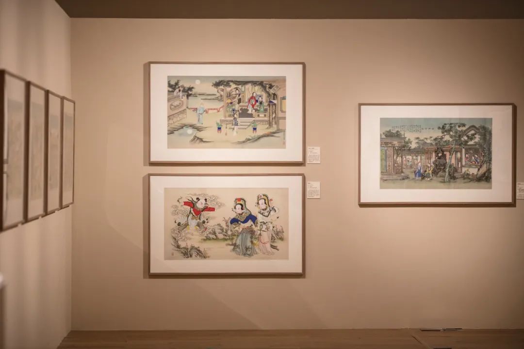 年画为欢庆年节、装饰环境而制,不仅记载历史,传承文化,也蕴含人民对美好生活的朴实期冀。本单元年画主要来自天津杨柳青、苏州桃花坞、潍坊杨家埠及开封朱仙镇等产区,尤以北方年画中心杨柳青为主。展品多为刻印精细,描绘精致的精品,题材分为驱邪纳福、戏剧传说祛邪祈福、戏曲传说、世俗生活等。本单元另设专题展示新中国成立后应宣传需要创作的“新年画”。年画富有浓郁的乡土气息,至今仍保持旺盛的艺术生命力。部分年画是1953年展览之后几年的收藏。