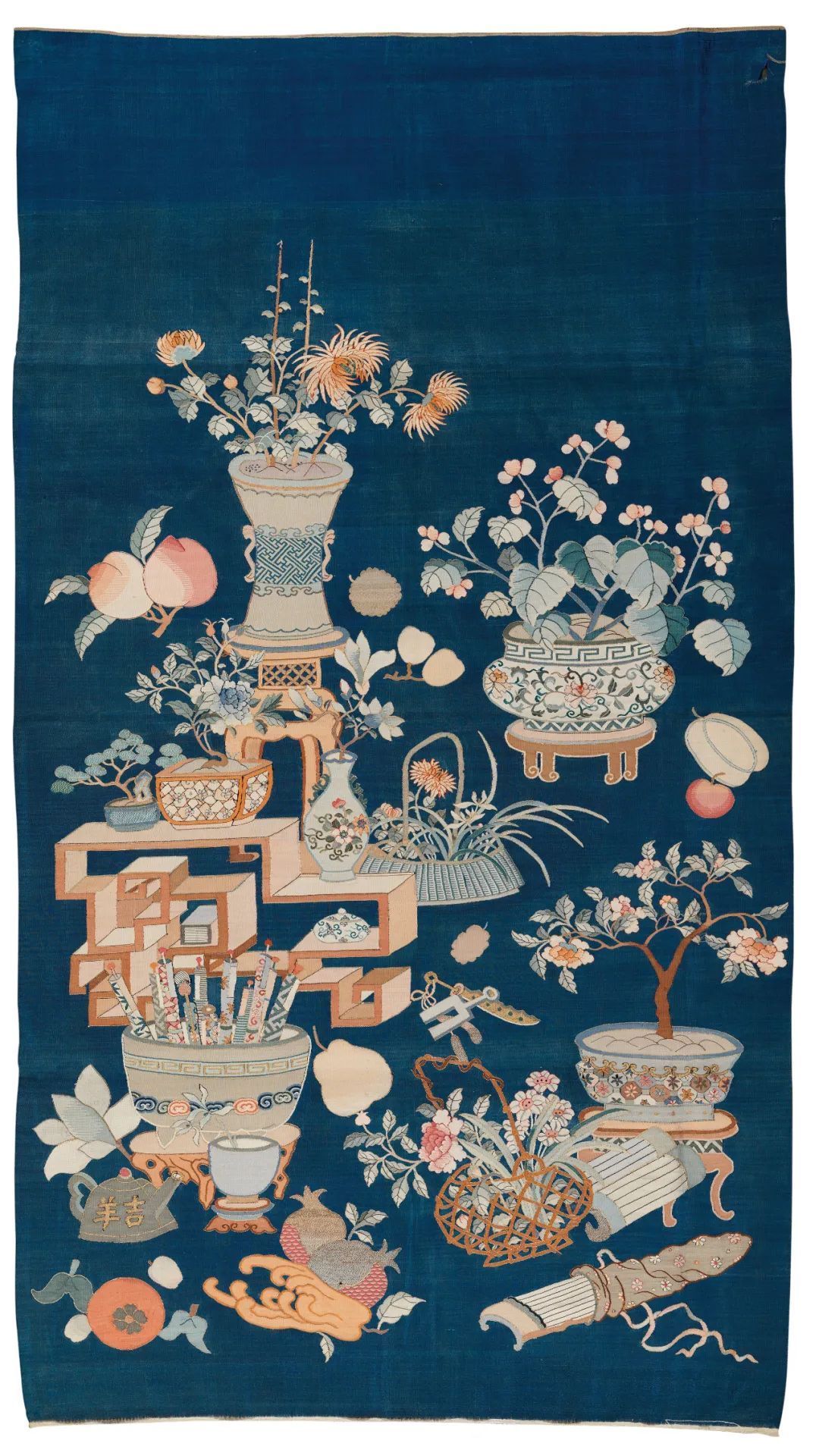 蓝地博古缂丝镜芯
