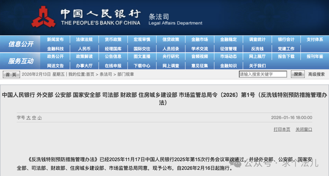 2026年2月16日,由央行、外交部、公安部等八部门联合发布的《反洗钱特别预防措施管理办法》正式施行,这一新规的落地的核心是“精准打击洗钱犯罪,守护金融安全”,并非给普通人的正常金融活动设限。