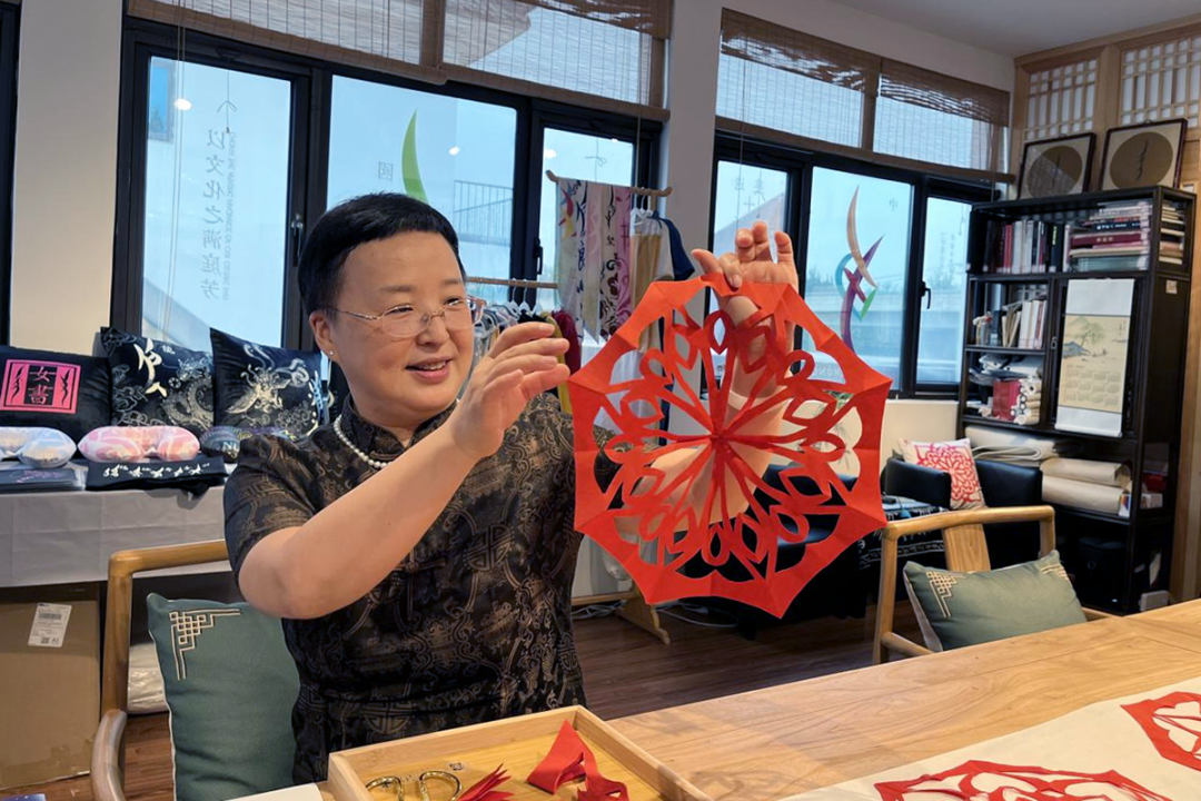 北京首家女书文化体验空间坐落于空港街道明悦港产业园,展示着来自湖南江永的国家级非物质文化遗产“女书”这一独具特色的文化。在这里,市民可以体验女书描红、八角花剪纸等,同时,还可以在体验空间中欣赏多种类型的女书作品,零距离感受非遗文化。