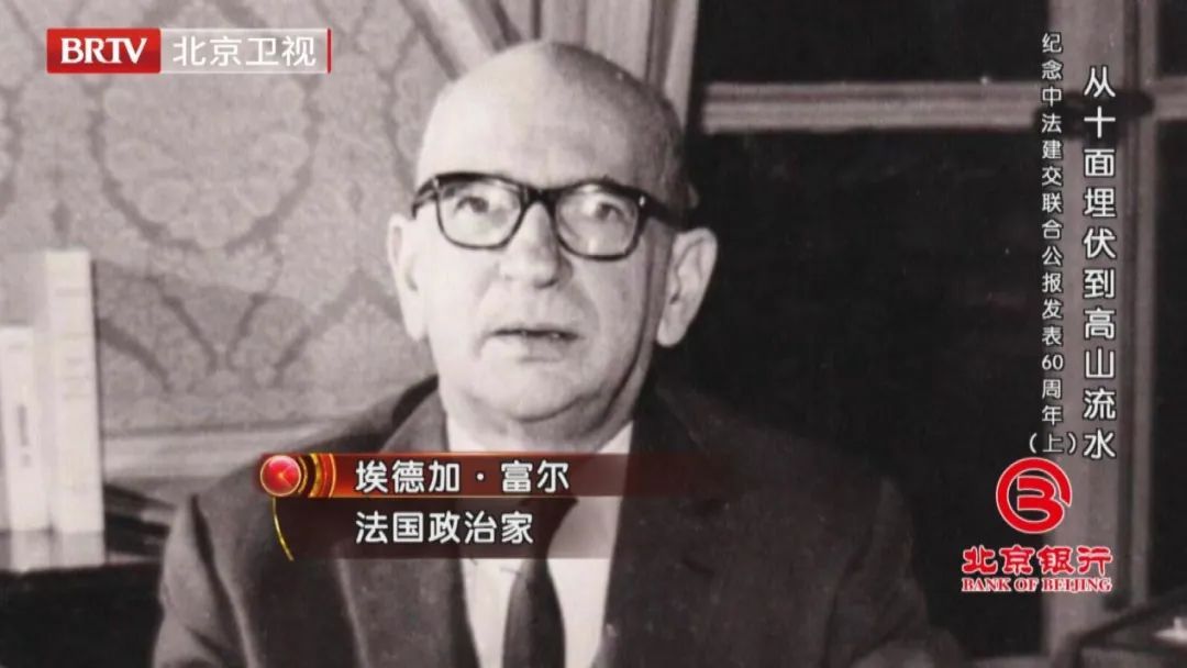 埃德加·富尔在中法建交中发挥了重要作用。1957年5月20日至6月22日,从法国总理之位辞职的富尔在长达一个月的时间里对中国进行了广泛的考察。富尔的第一次中国之行,在与毛泽东、周恩来的交谈中收获颇多,促使他写出了一本极为重要的著作《蛇与龟》。