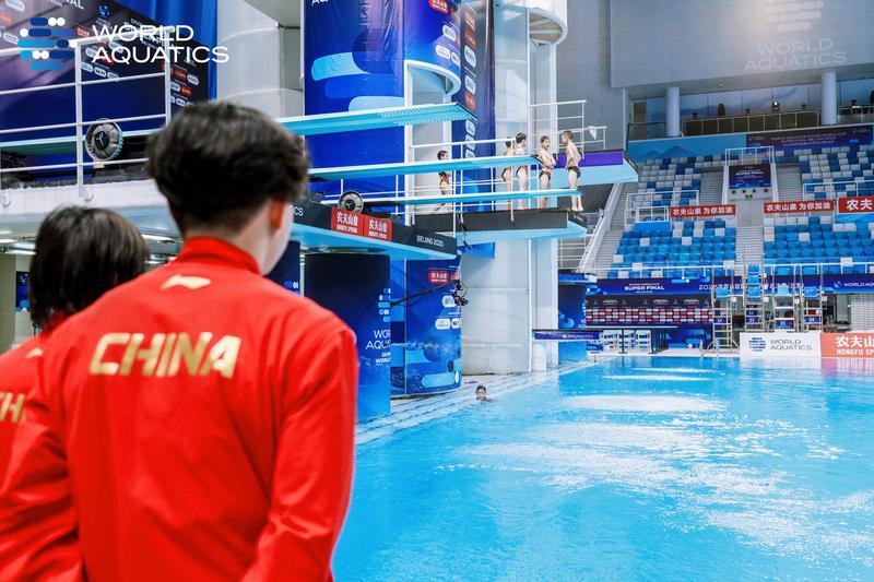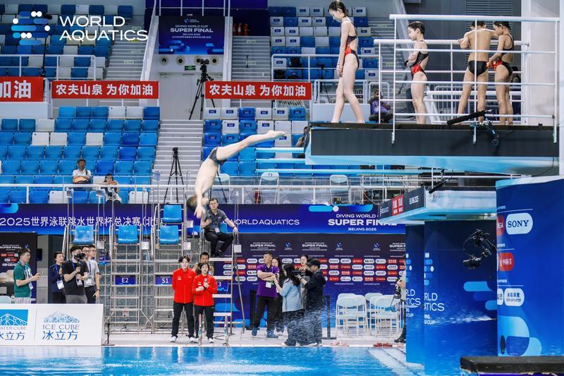 对于来自北京木樨园体校的10位跳水小将来说,“五一”假期的“打开方式”足够特别。1日,他们带着兴奋和好奇,走进国家游泳中心“水立方”,参加“冠军课堂”,教练是中国跳水队的三位奥运冠军——全红婵、陈艺文、王宗源。2日,为期三天的2025年世界泳联跳水世界杯总决赛将在“水立方”拉开帷幕。