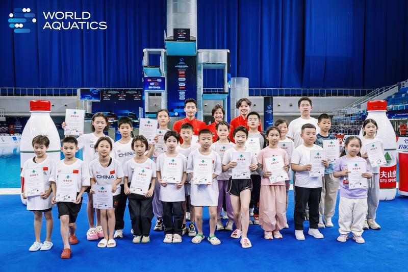 1日,他们带着兴奋和好奇,走进国家游泳中心“水立方”,参加“冠军课堂”,教练是中国跳水队的三位奥运冠军——全红婵、陈艺文、王宗源。2日,为期三天的2025年世界泳联跳水世界杯总决赛将在“水立方”拉开帷幕。