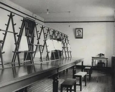 ▲1950年,北大在红楼一层布置的“毛主席在校工作处”和“李大钊先生纪念堂”
