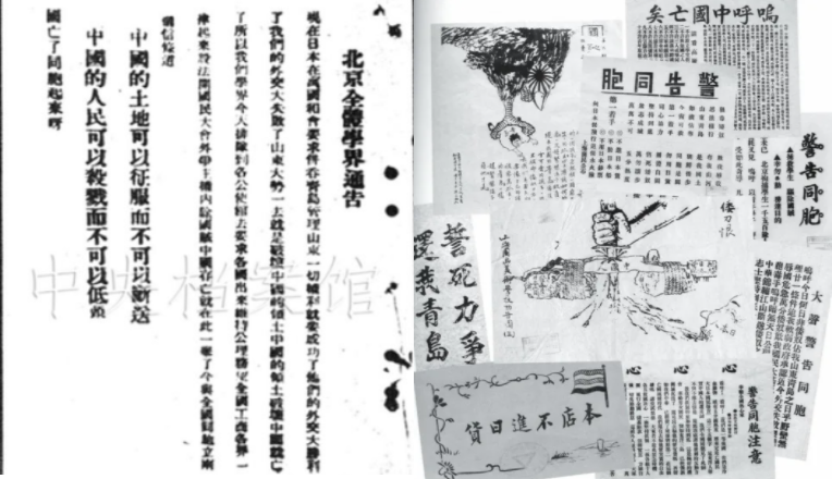 ▲左图:在红楼诞生的五四运动当天唯一的印刷品《北京全体学界通告》