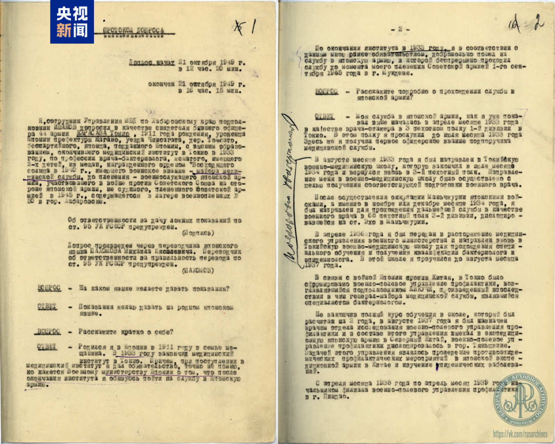 俄罗斯公布侵华日军731部队军医证词_北京时间