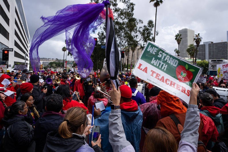 美国洛杉矶联合学区21日开始为期三天的大罢工,逾50万名学生及其家庭受到学校关停的影响。