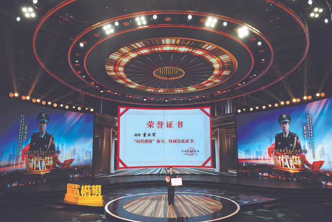 当许文军替深爱的丈夫接过“时代楷模”证书和奖章时,现场观众全体起立,掌声持久而热烈。大家向董亦军致敬!向一位全心全意为人民服务的好警察致敬!向一位把生命奉献给公安事业的好警察致敬!