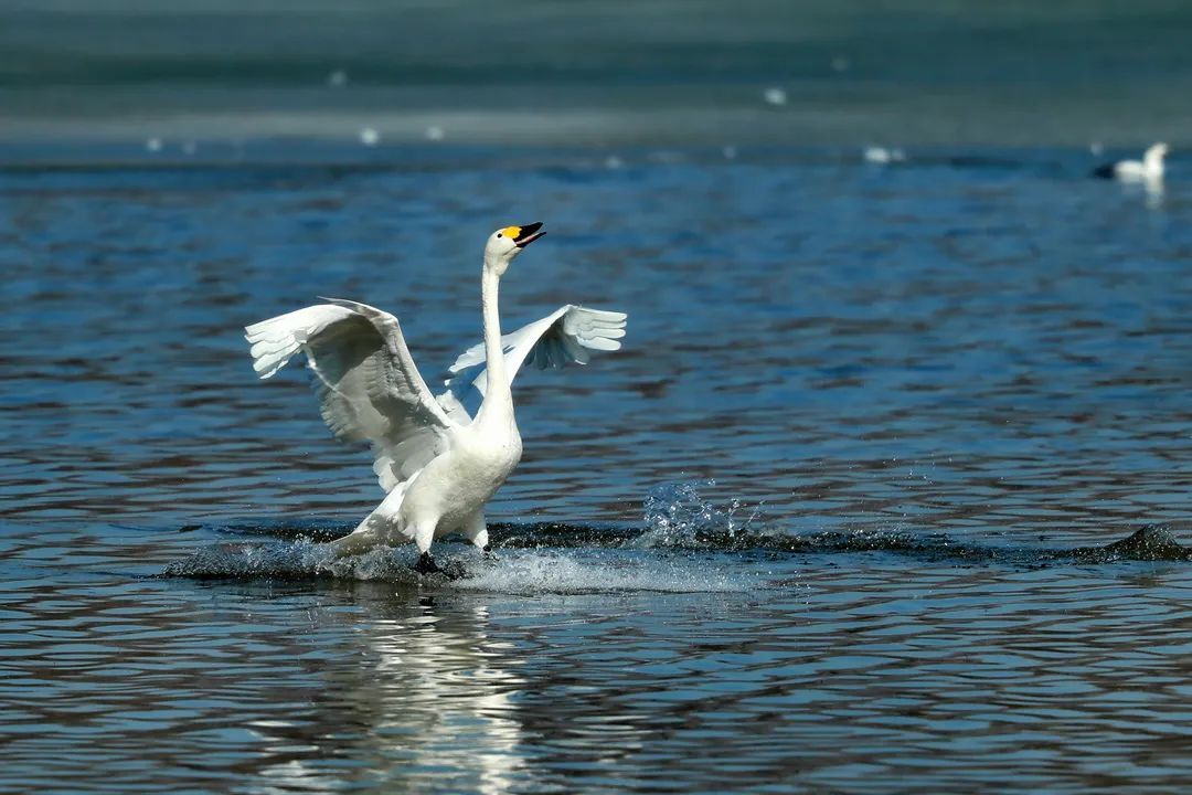 △白天鹅在水中展翅起舞