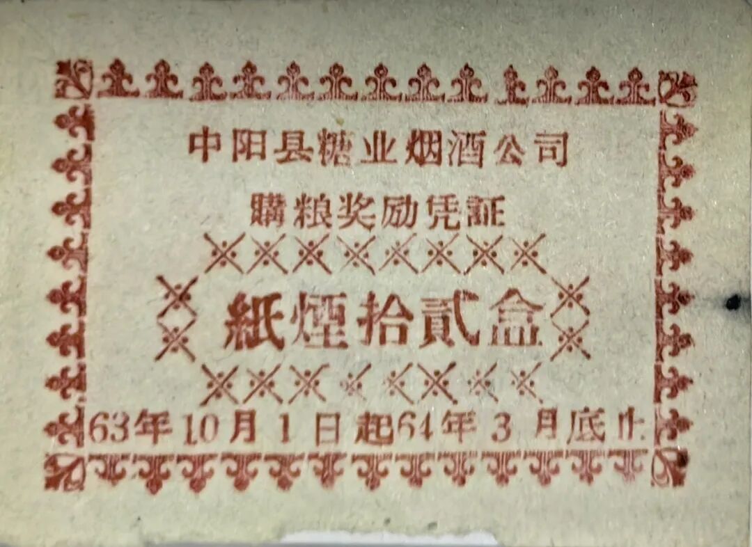 比如上图这张中阳县糖业烟酒公司1963年10月1日发行的“购粮奖励凭证”,便属于比较少见的“奖励粮票”。