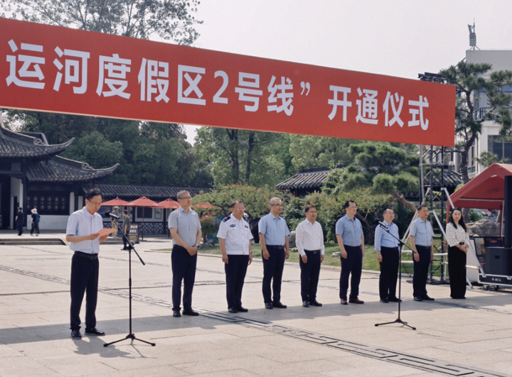 为完善大运河文化旅游度假区交通微循环体系,提升游客出行便捷度,今天(5月30日)上午,扬州大运河文化旅游度假区环线2号线开通仪式在瘦西湖西门广场举行。