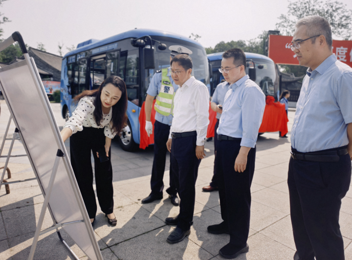 活动现场,市蜀冈-瘦西湖风景名胜区党工委书记刘卫国和市交通产业集团党委书记、董事长、总经理曹远志分别致辞。车长代表史健进行了表态发言。随后,汤卫华、刘卫国、曹远志、李刘杰共同为“大运河度假区2号线”开通揭彩。