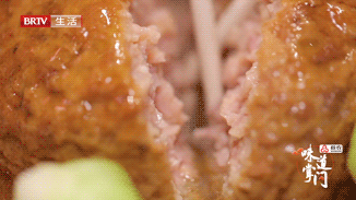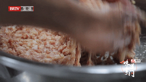 传说听个意思,这道菜其实特别讲究刀工,肉丁不是剁出来的,而是 “切”出来的。这也就是菜名中,“斩”字的由来。宋春祥将五花肋条肉切成石榴米大小的丁,再加入马蹄碎、鸡蛋清、姜葱水、料酒等调料拌匀。葵花大斩肉味道独特的秘诀,还需要另一道手工操作才能完成的步骤,那就是“摔肉”。据说,只有肉摔到位,才会有诱人的香气。