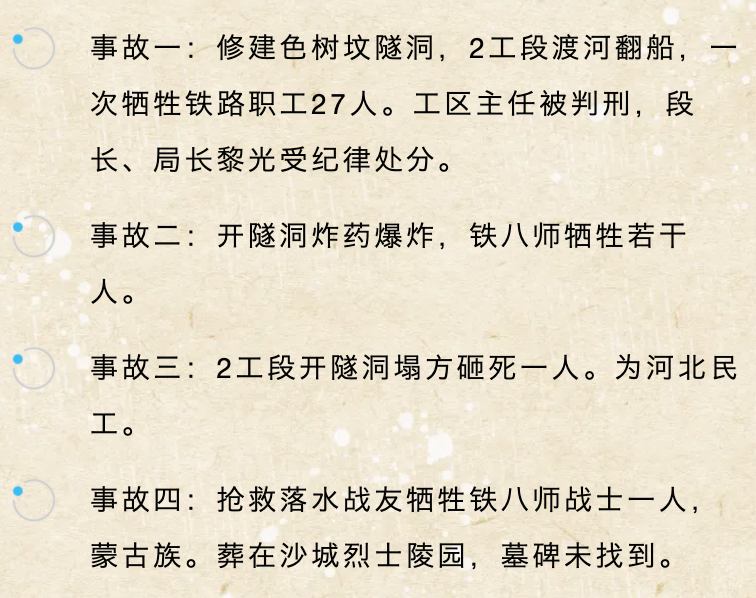 建设会有牺牲,尤其在那样一个条件艰苦,工程设施设备并不先进的年代。像这样的事故,王波搜集到的资料显示,一共有四次,分别是: