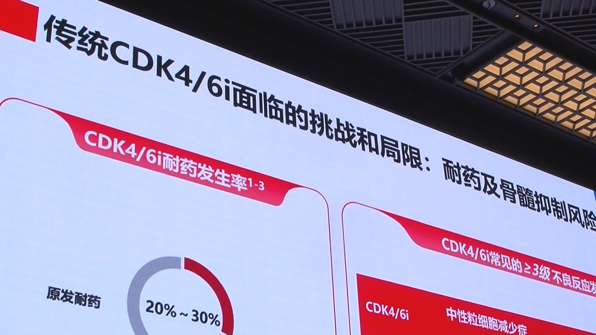 杨谨介绍,随着疾病进展,CDK4/6抑制剂在临床广泛应用的同时,耐药与骨髓抑制、腹泻等副作用问题往往成为治疗的关键瓶颈。真实世界数据显示,约20%的HR+乳腺癌患者初始即对内分泌治疗耐药,另有30%—40%的患者在联合使用CDK4/6抑制剂后会产生继发耐药,导致疾病进展难以避免。“HR+乳腺癌患者采用内分泌单药联合CDK4/6抑制剂无疾病进展时间可以达到两年甚至更长,但两年后,部分患者会出现耐药。”因此,克服耐药、开发新的治疗策略,仍是当前临床研究的重要方向。