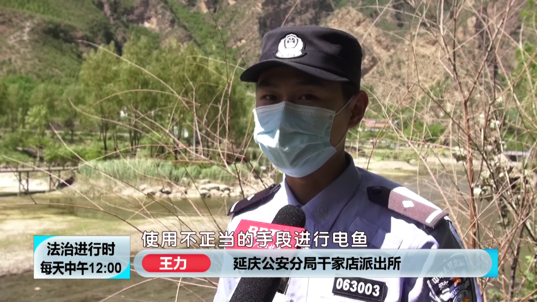 延庆公安分局千家店派出所接群众举报,有两名男子,在菜木沟村附近的河道电鱼。北京今年的4月至9月为禁渔期,延庆公安分局为了严厉打击,使用禁用工具,禁用方法,捕捞水产品的违法行为,与生态管理部门开展联合治理,定期巡查。