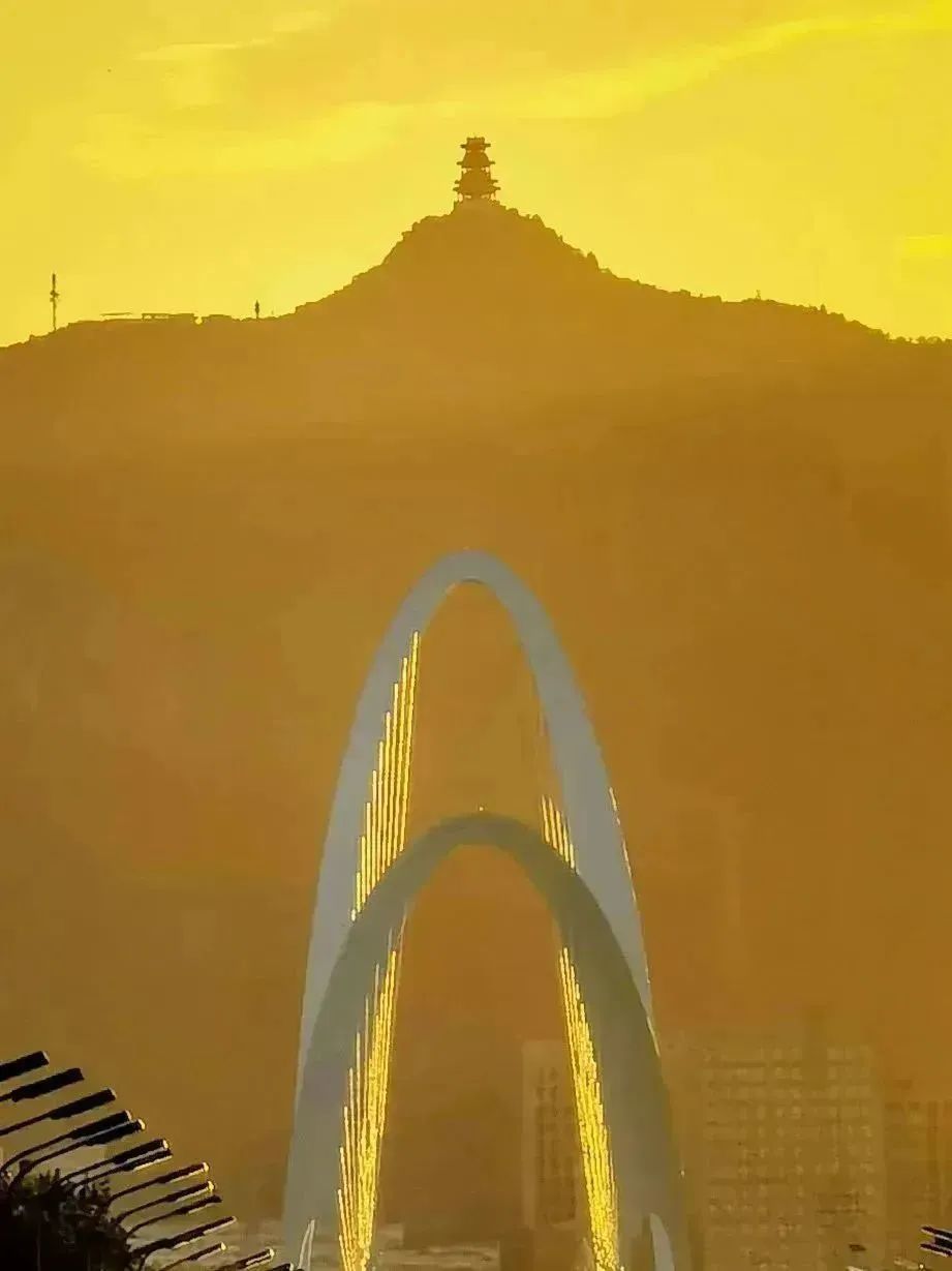 大桥横望似蝶展翅,纵看如山峦重叠,常有骑行者慕名而来。