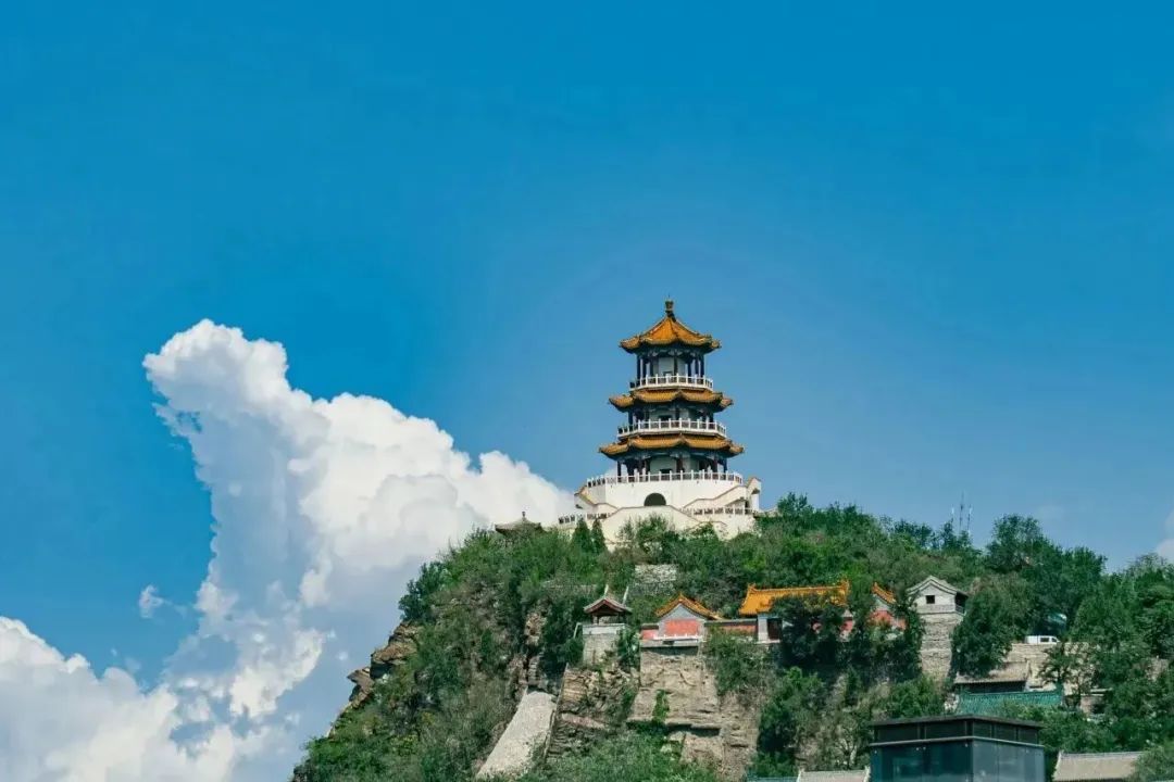 石景山位于今首钢园内的小西门南侧,被誉为“燕都第一仙山”。山上古迹众多,尤以佛教金阁寺和道教碧霞元君庙为著。