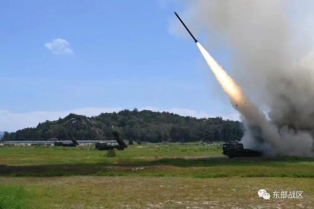 中国人民解放军在台岛周边海空域开始进行重要军事演训行动,并组织实弹射击。东部战区火箭军部队对台岛东部外海预定海域,实施多区域、多型号常导火力突击,导弹全部精准命中目标,检验了精确打击和区域拒止能力。
