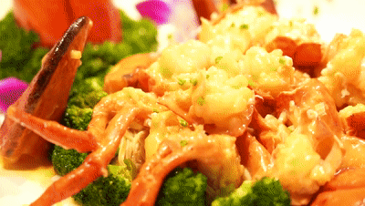 烹好的虾肉几乎溢出壳,将鸡汁或者高汤浇在上面,再撒上葱姜,这样做出来的龙虾肉格外鲜甜,入口鲜嫩弹牙有嚼劲,口感、调味层次明显。
