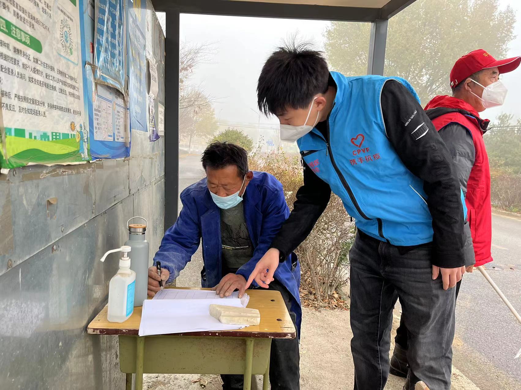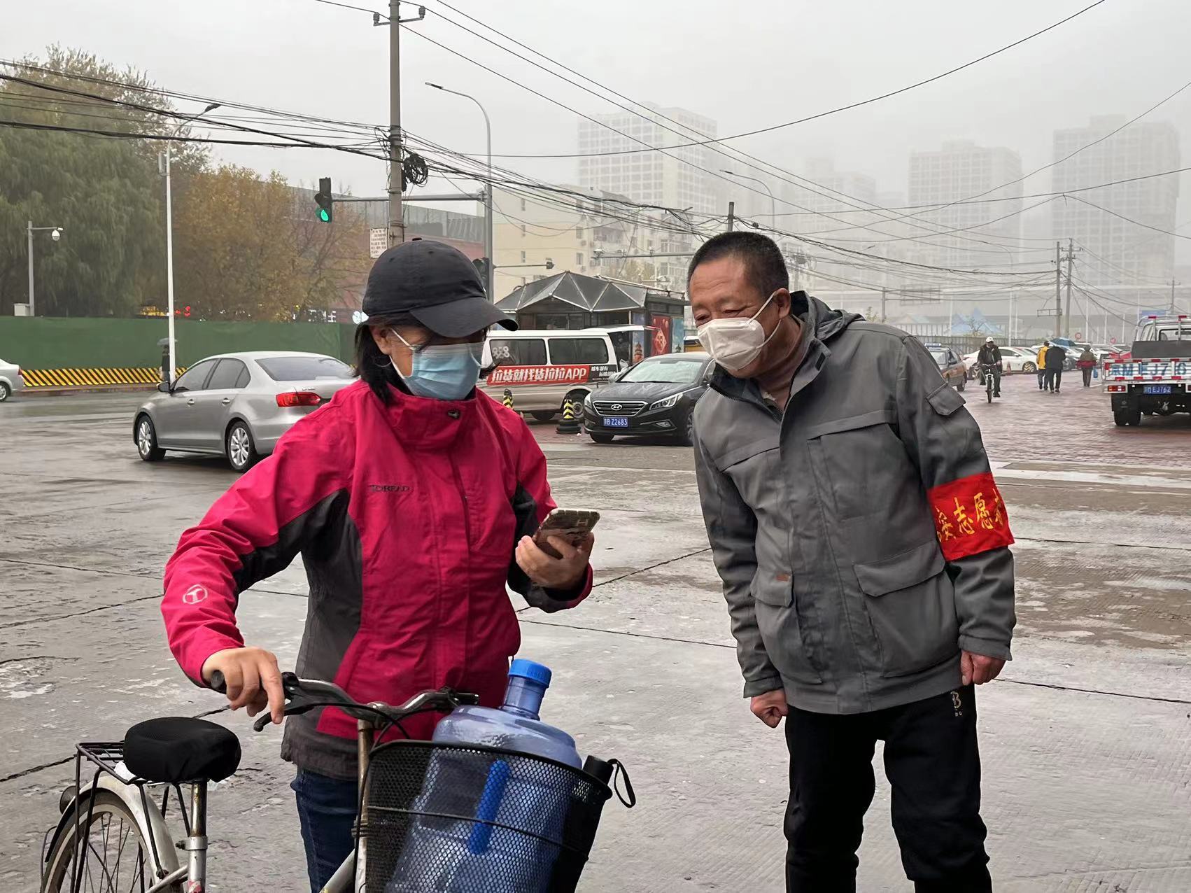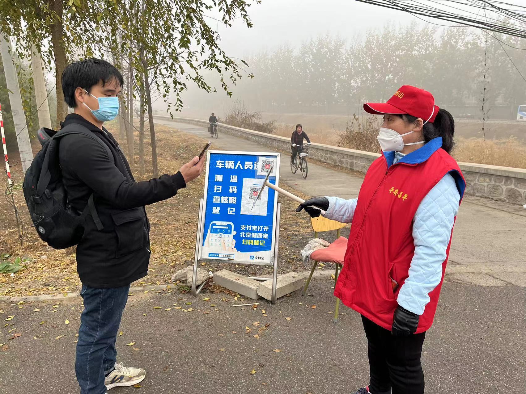 在小汤山镇葫芦河村,尽管天空飘着细雨,但似乎并没有影响志愿者的热情。大家伙积极主动,严格落实防疫责任,化身为疫情防控的防疫员、宣传员。