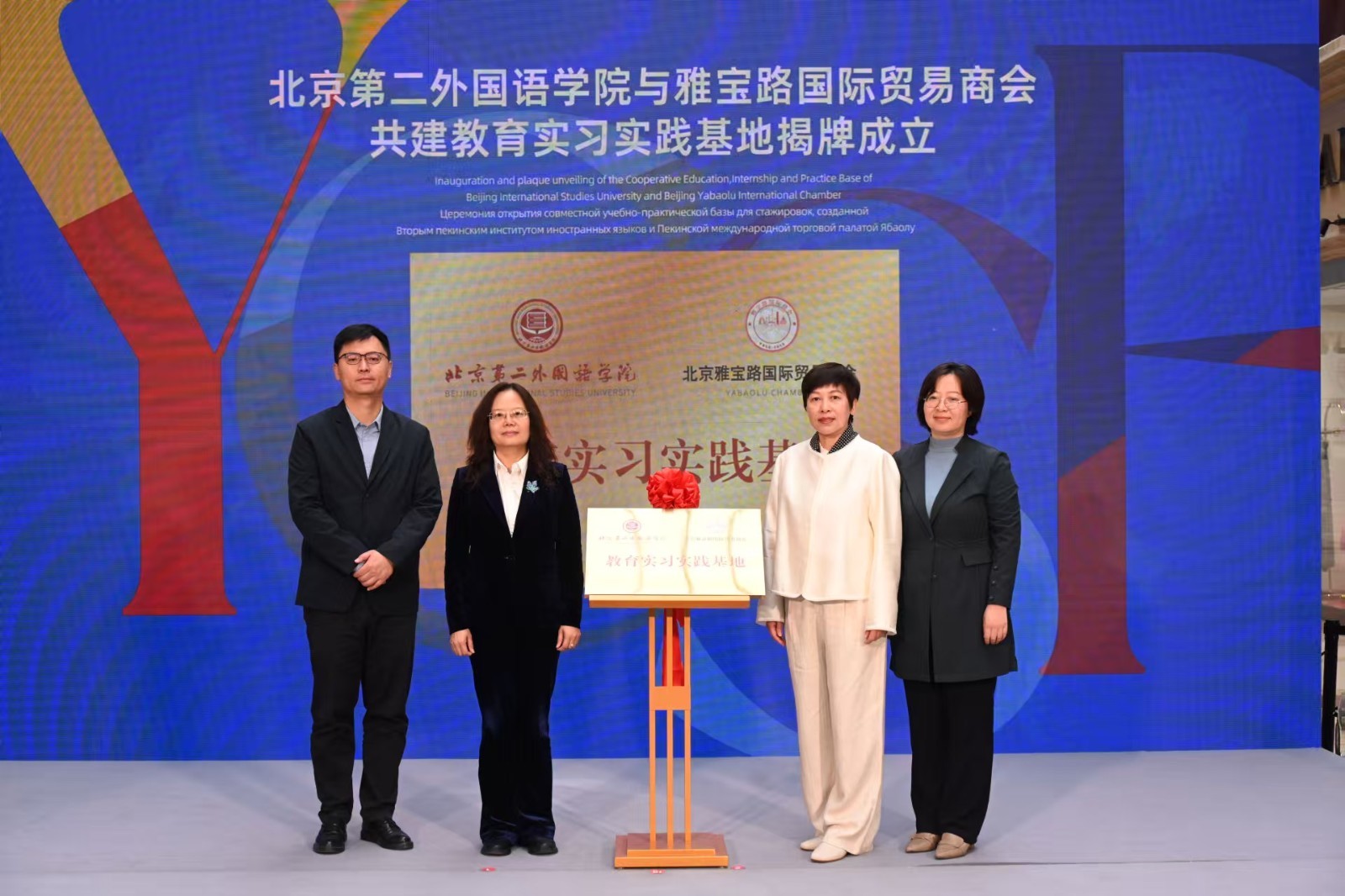 北京第二外国语学院与雅宝路国际贸易商会共建的“教育实习实践基地”今天也正式成立,由中国政法大学外国语学院与雅宝路国际贸易商会共建的“涉外法治人才培养实习实践基地”同时揭牌。
